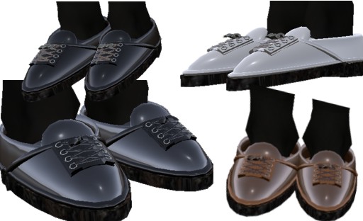 MEN's SHOES Regardless of the shoe style below, each shoe comes with a very power menu system that can only be used by the owner. This system allows you to change size, while the shoes are on your feet and you are adjusting them, and also to change color. The color menu is extensive and allows 99 quick color names. However, if this is not enough, brightness controls and / or usage of a RGB setting adjust allow you to achieve any SL color. Keep in mind though, that shoe texture may change the color appearance a bit, for shiny shoes or those with another background texture.